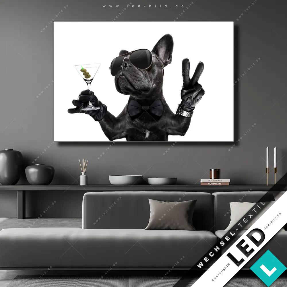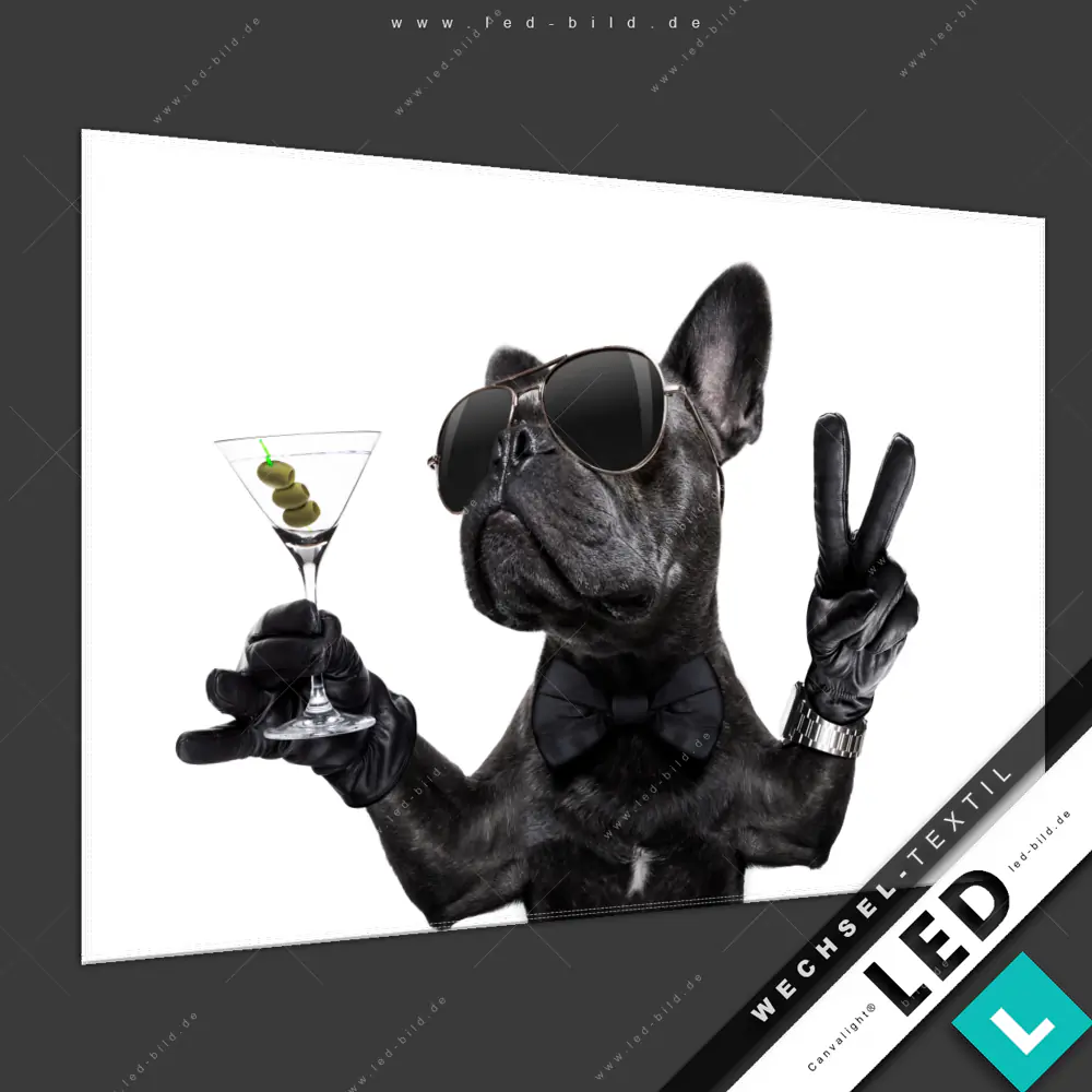 Canvalight® Wechsel-Textil | Bulldogge mit Martini | Querformat