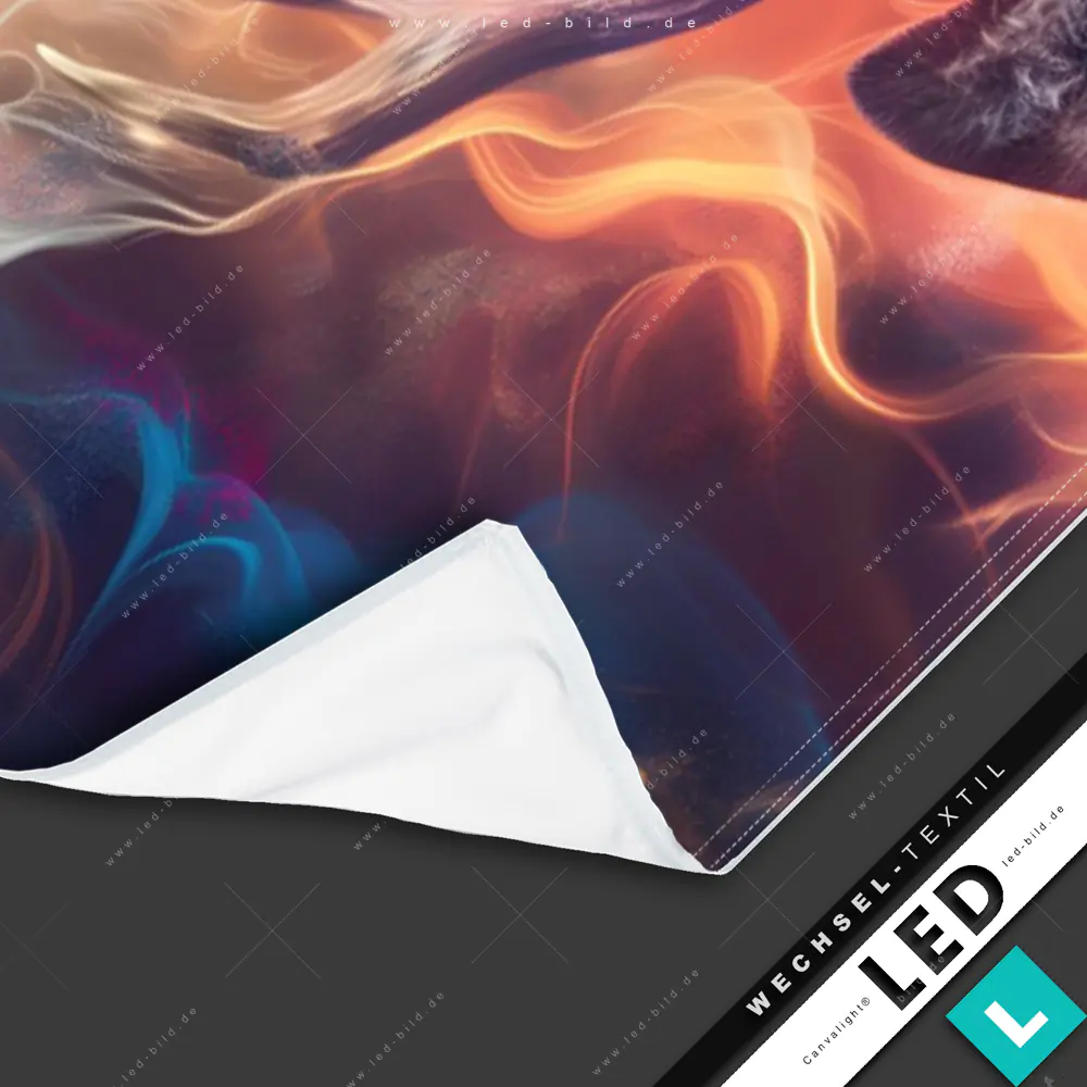 Canvalight® Wechsel-Textil | Bunter Hirsch in Flammen | Panorama