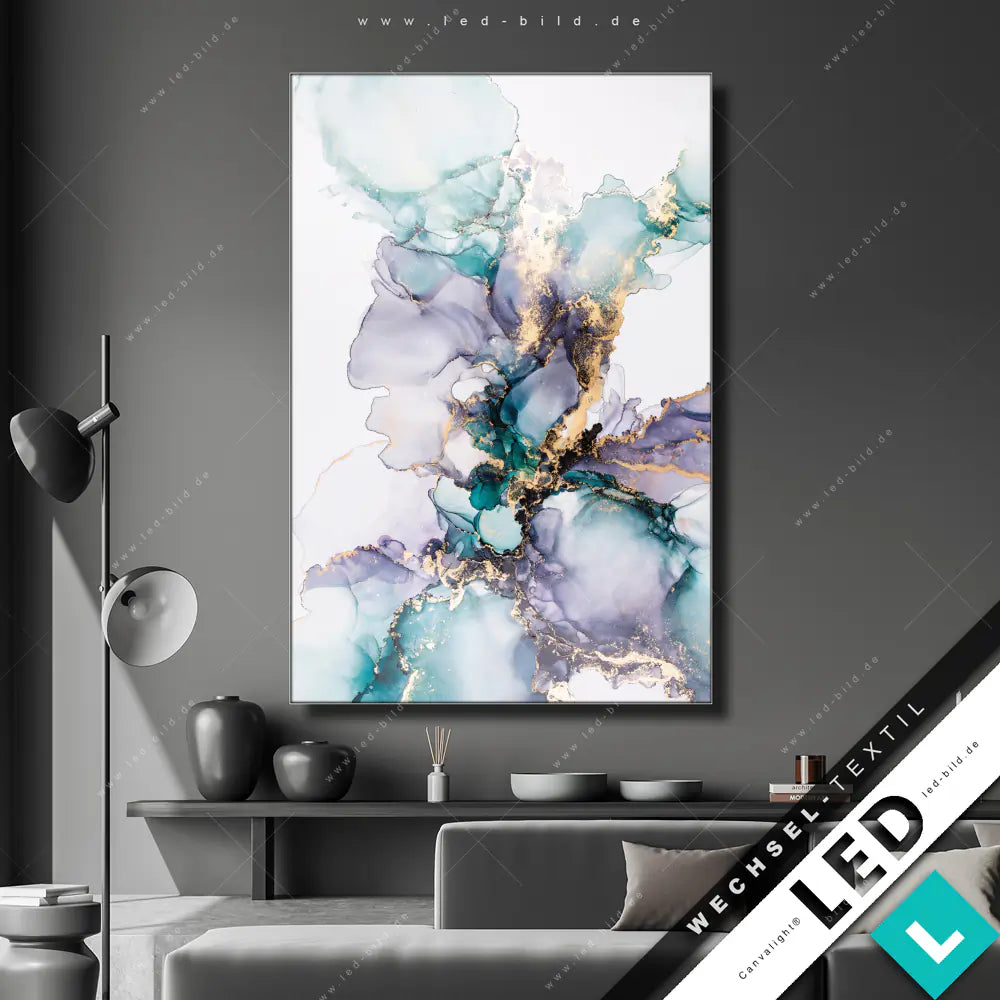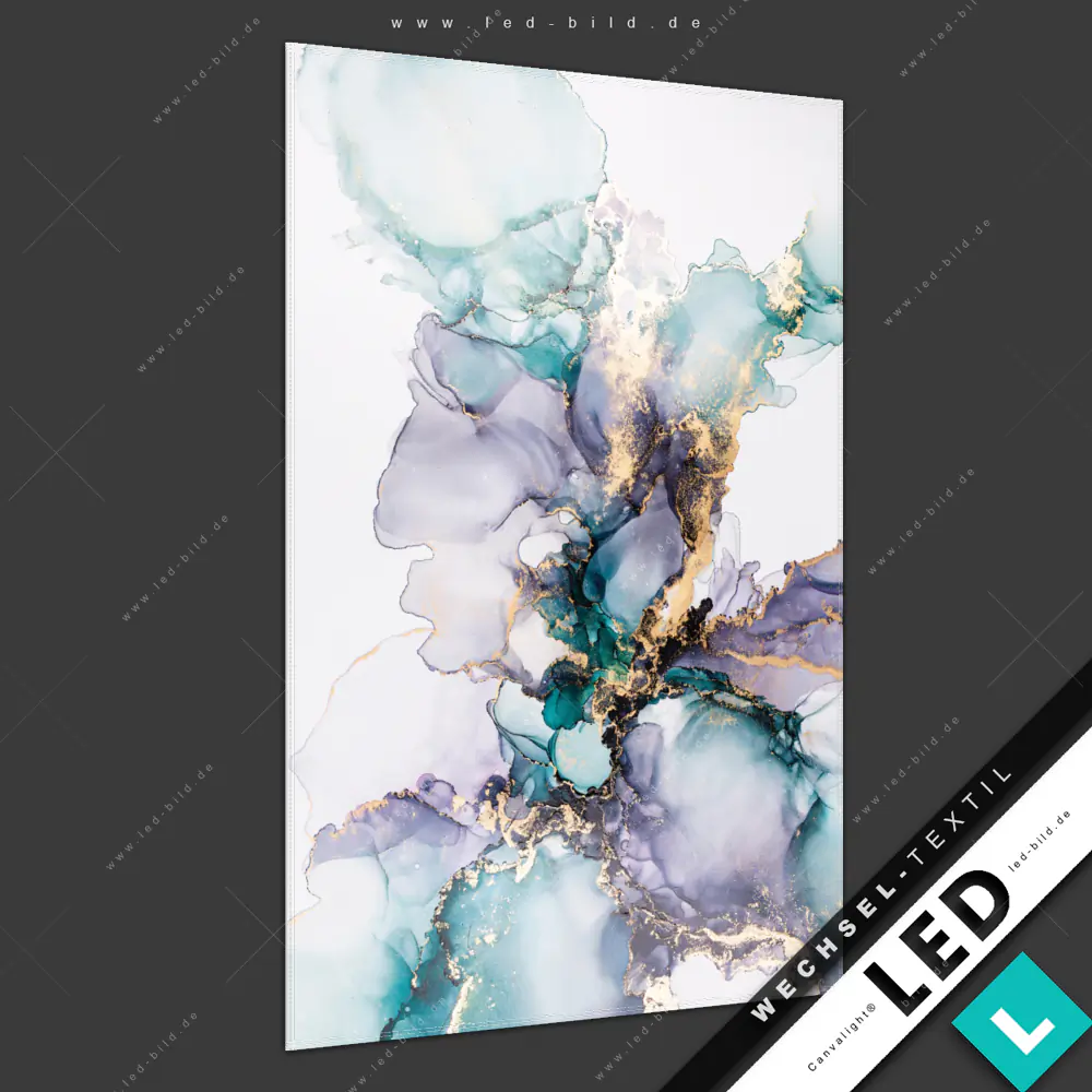 Canvalight® Wechsel-Textil | Fluid Art Lila & Türkis | Hochformat