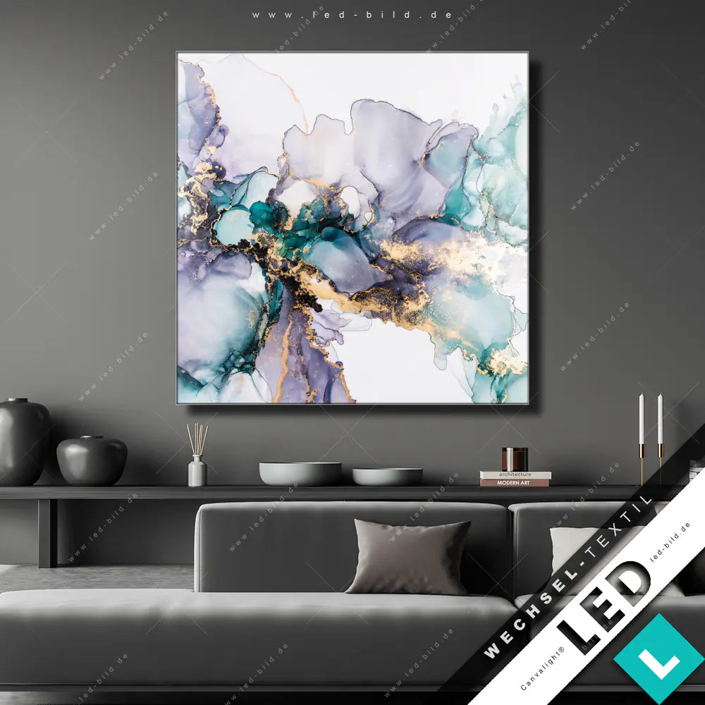 Canvalight® Wechsel-Textil | Fluid Art Lila & Türkis | Quadrat