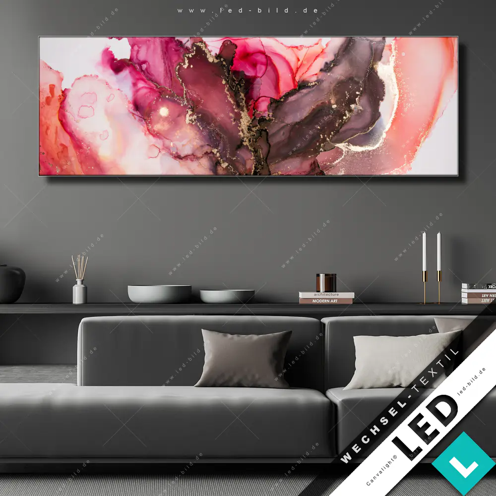 Canvalight® Wechsel-Textil | Fluid Art Rot & Braun | Panorama