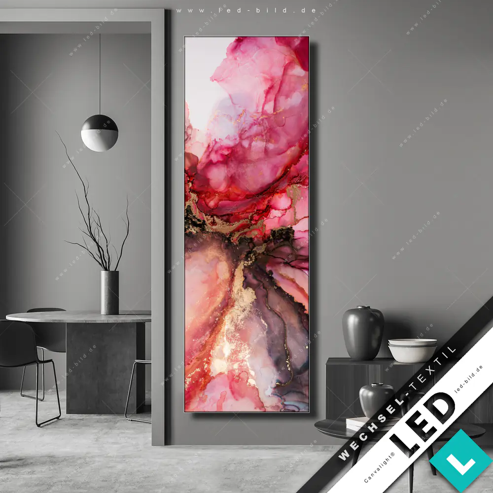 Unser genialer Austausch-Textildruck Alkoholtinte - Floraler Zauber verwandelt deine Leuchtbilder und Textilrahmen im Handumdrehen. Ob in Arzt - Praxis, Büro - Kanzlei, Wohnzimmer - Schlafzimmer oder deiner gemütlichen Leseecke - der Ersatzdruck Fließende Farben in Rottönen verleiht jedem Spannrahmen-Bild eine persönliche Note.