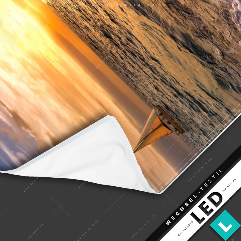 Canvalight® Wechsel-Textil | Goldenes Licht am Meer | Hochformat