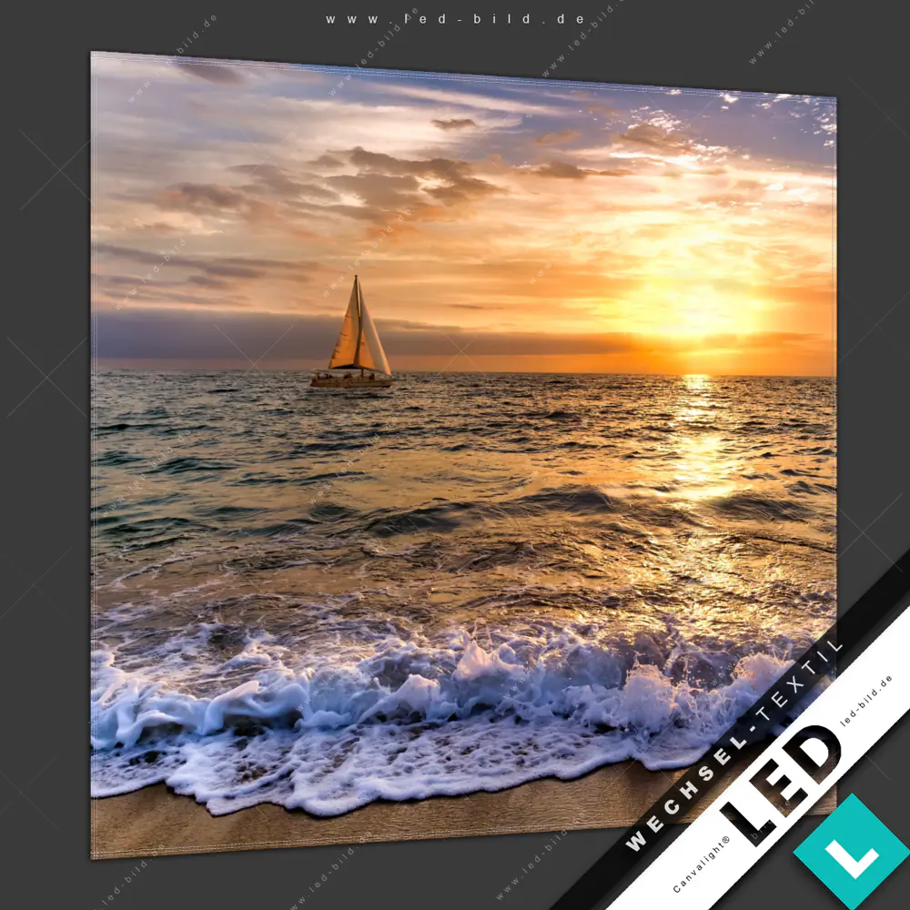 Canvalight® Wechsel-Textil | Goldenes Licht am Meer | Quadrat