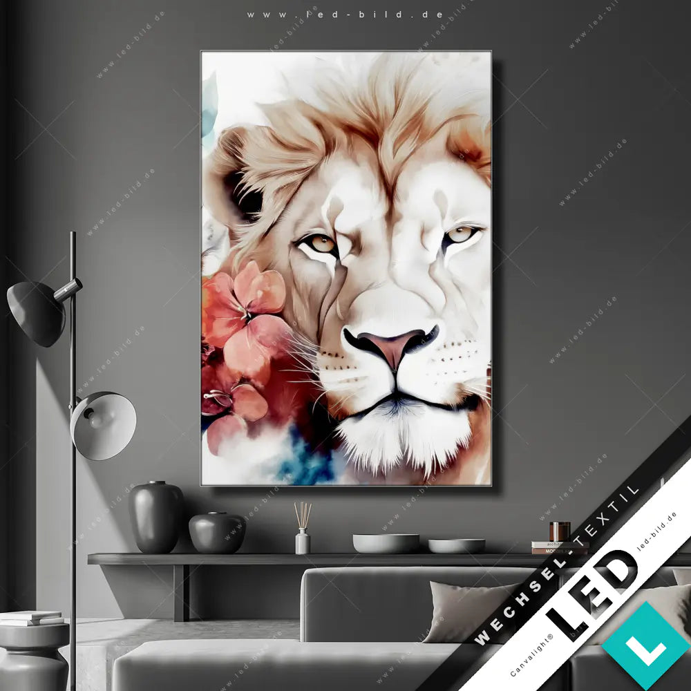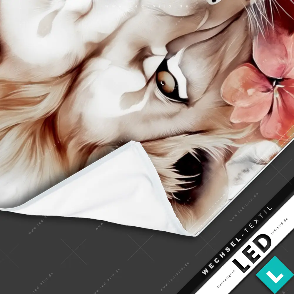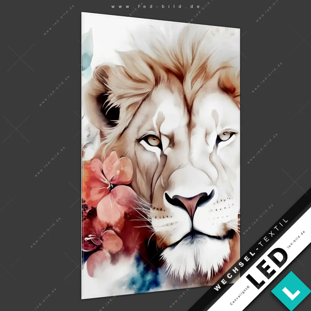 Canvalight® Wechsel-Textil | Löwe mit Blumen | Hochformat