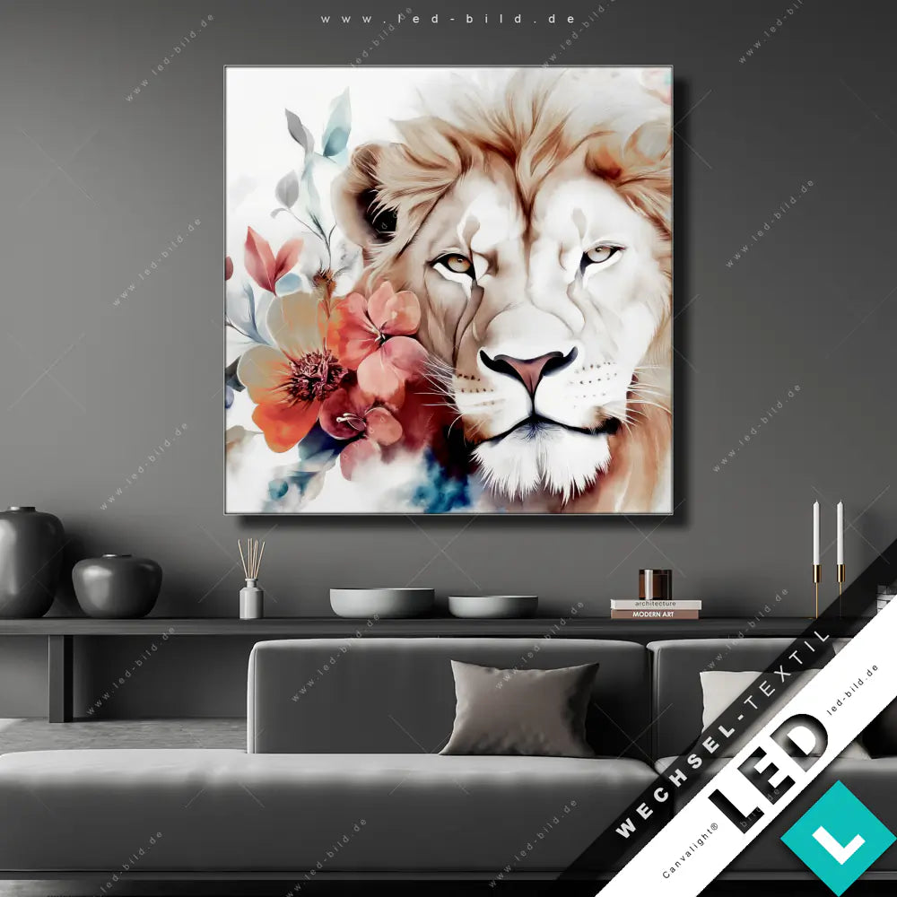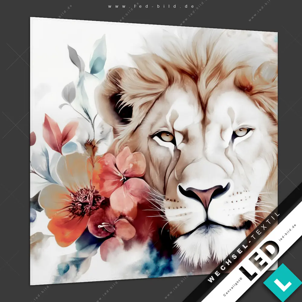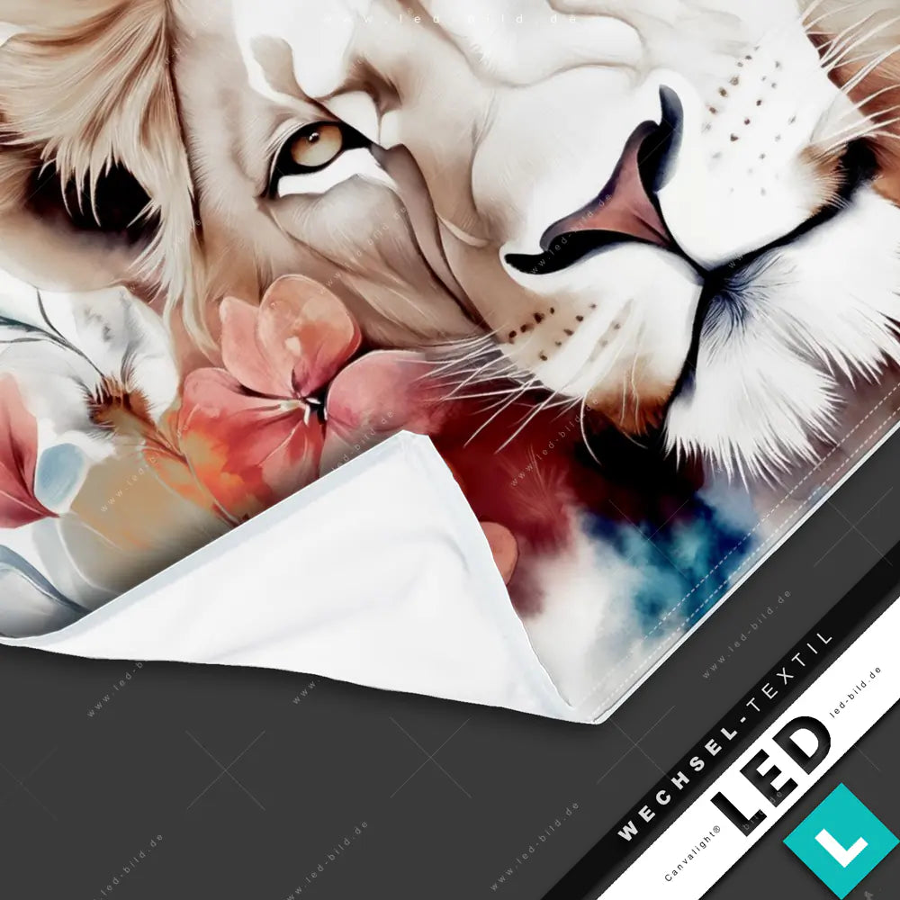 Canvalight® Wechsel-Textil | Löwe mit Blumen | Quadrat