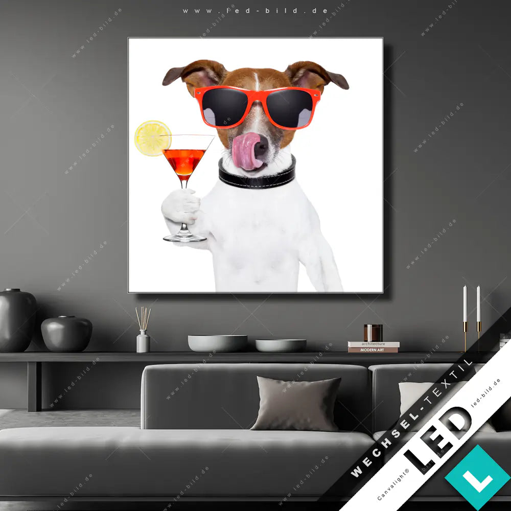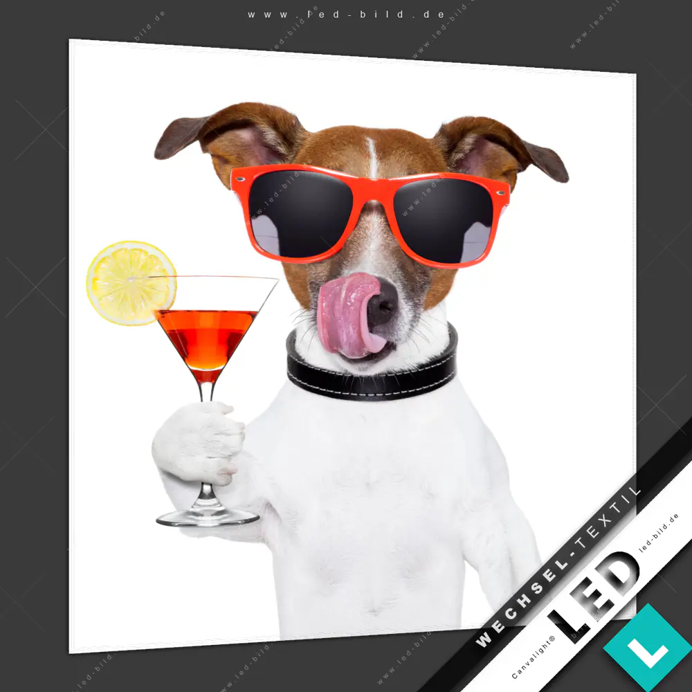 Canvalight® Wechsel-Textil | Lustiger Hund mit Drink | Quadrat