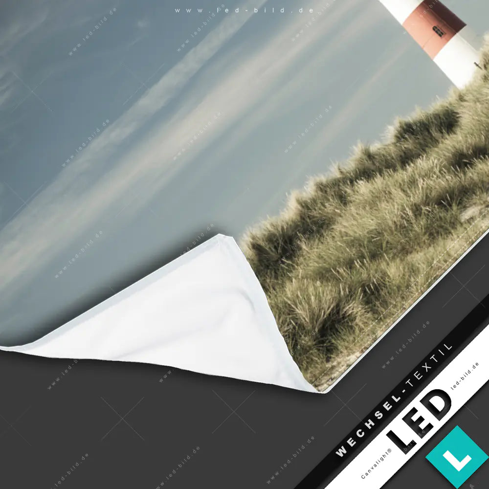 Passgenau, individuell, faltenfrei – dein Leuchtturm auf Düne Wechselbild nach Maß